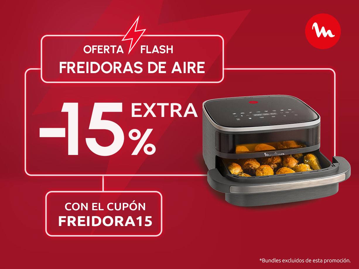 - -15% EXTRA con el cupón FREIDORA15*Bundles excluidos de esta campaña.*Promoción válida del 06 al 12/04/2026.