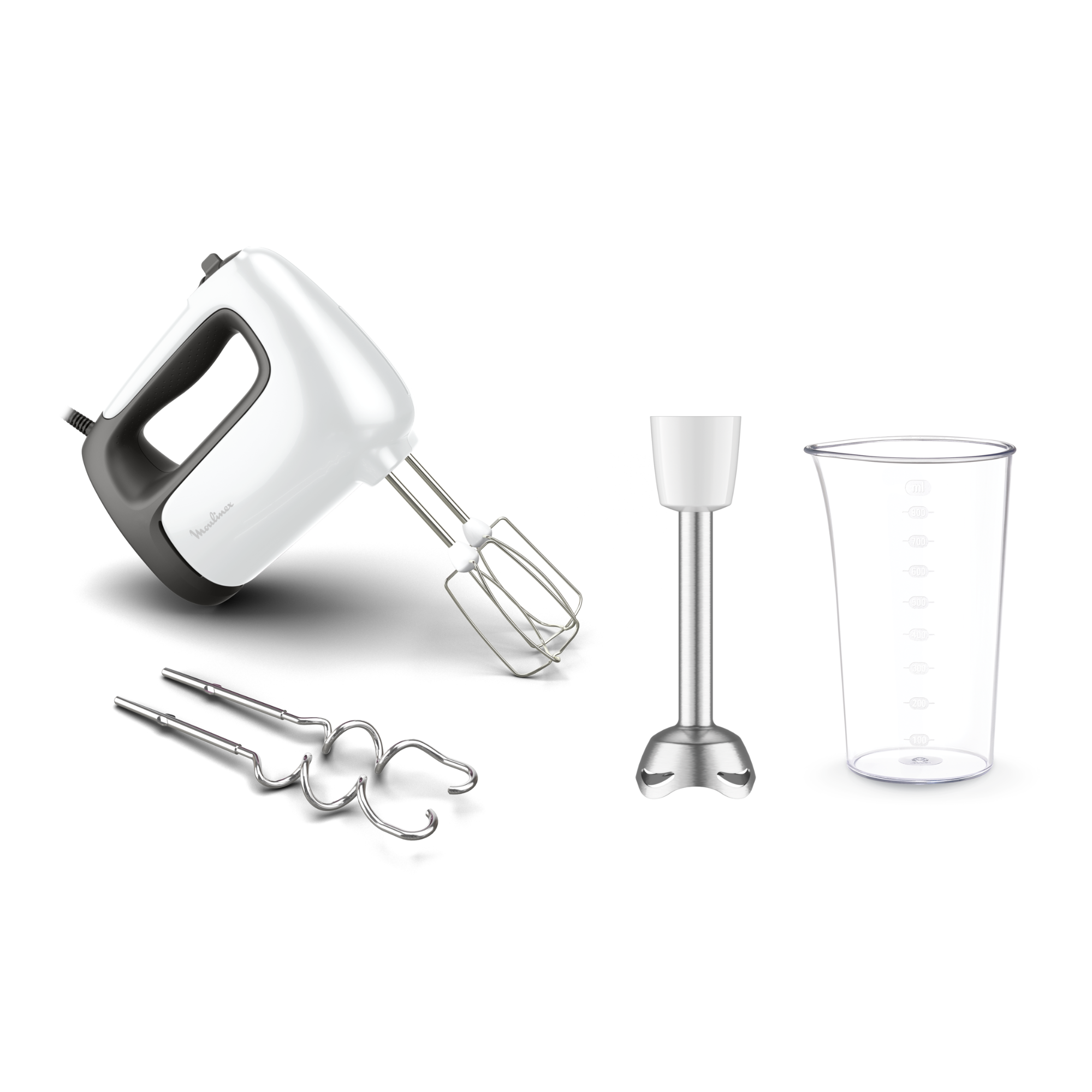 *Promoción válida del 15/10/2025 hasta el 02/11/2025.Prep'Mix, Batidora de varillas, Amasadora, 450 W, 5 velocidades, 2 varillas, 2 ganchos de amasar, Acero inoxidable, Ergonómica