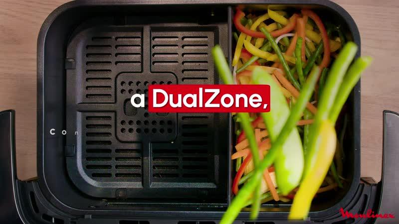 DUAL, ÚNICA O AMBAS: Gracias al ingenioso separador FlexCook que te permite cambiar fácilmente de dos zonas (5,5 L + 3,5 L) a 1 sola grande (9 L) ZONA GRANDE DE 9 L: óptima para comidas de gran tamaño. Caben bandejas de lasaña, patatas fritas o dos pollos enteros uno al lado del otro. Idónea para entre 8 y 10 personas COCINA DOS TIPOS DE COMIDA A LA VEZ: como una freidora aire dual, con 2 elementos calefactores realmente independientes, con controles individuales de tiempo y temperatura