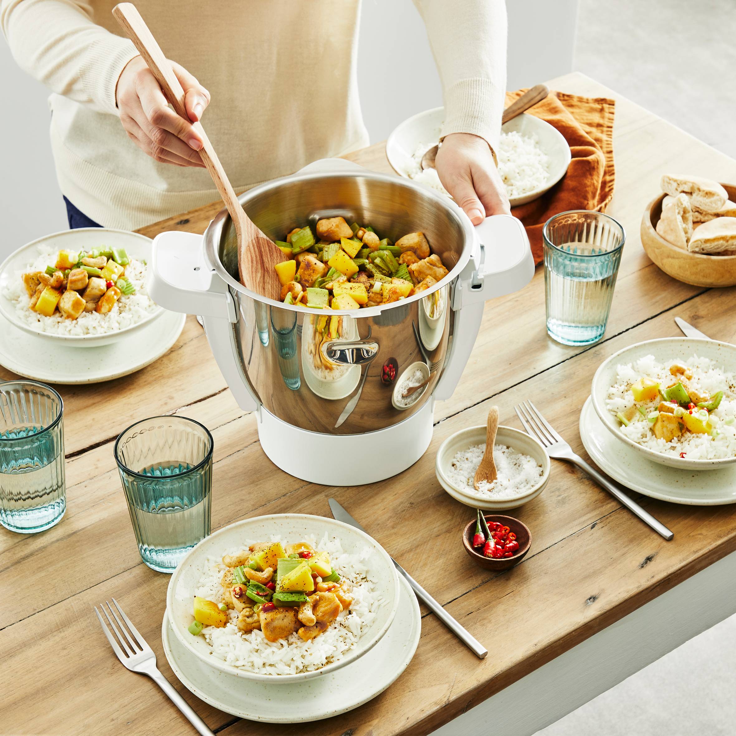 ¡Cocinar deliciosos platos caseros para tu familia o invitados es más fácil que nunca! Empieza utilizando la aplicación Moulinex para encontrar la receta perfecta y deja que tu robot de cocina Companion haga el resto. Prepara comidas que nunca dejarán de impresionar gracias a sus 12 programas automáticos, sus 5 accesorios específicos y su generosa capacidad. Companion corta, mezcla y cocina sin necesidad de supervisión.