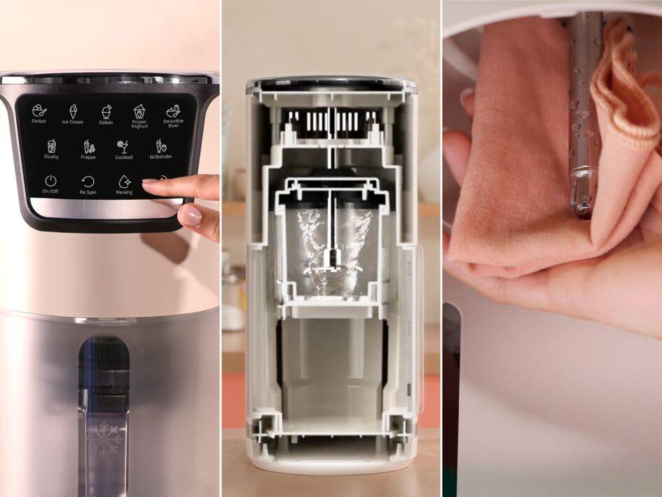 9 PROGRAMAS AUTOMÁTICOS: disfruta de 5 programas de cuchara (sorbete, helado, gelato, smoothie, yogur helado) y 4 programas de bebida (cóctel, granizado, batido, frappé) LLÉNALO, CONGÉLALO, BÁTELO Y PRUÉBALO: solo tienes que llenar una tarrina con tus ingredientes favoritos, dejarla 24 horas en el congelador y, en cuestión de minutos, disfrutarás de un helado cremoso y delicioso HELADOS A TU GUSTO: da rienda suelta a tu creatividad con el programa de "Mix In" para añadir deliciosos toppings, como pepitas de chocolate, ositos de gominola, almendras y mucho más RESULTADOS CREMOSOS: la exclusiva tecnología 1-Step Perfector garantiza unos resultados suaves y cremosos a la primera, sin necesidad de dar varias pasadas 3 TARRINAS PARA TODOS: disfruta a solas o con toda la familia, ya que esta máquina para hacer helados permite hacer hasta 1,4 L de helado utilizando las 3 tarrinas de Tritán incluidas FÁCIL DE LIMPIAR: higiene y limpieza perfectas gracias a un programa de aclarado automático, además de acceso total a todas las piezas que entran en contacto con los alimentos ¡INSPÍRATE!: recetario digital con 50 ideas, incluyendo recetas sin lácteos, veganas, sin azúcar, saladas y dulces 15 AÑOS DE REPARABILIDAD A UN PRECIO JUSTO: para una mayor durabilidad, recomendamos hacer las reparaciones en nuestra red de 6200 centros de reparación en todo el mundo