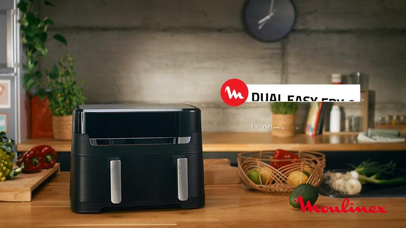 Freidora de aire, doble cubeta, 8.3 L de capacidad, tecnología grill, menú completo para toda la familia, ahorro de energía, 8 programas preestablecidos, app Moulinex gratuita