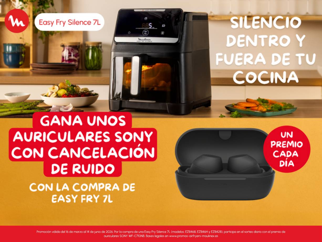 Silencio dentro y fuera de tu cocina Gana unos auriculares Sony con cancelación de ruido con la compra de Easy Fry Silence 7L.