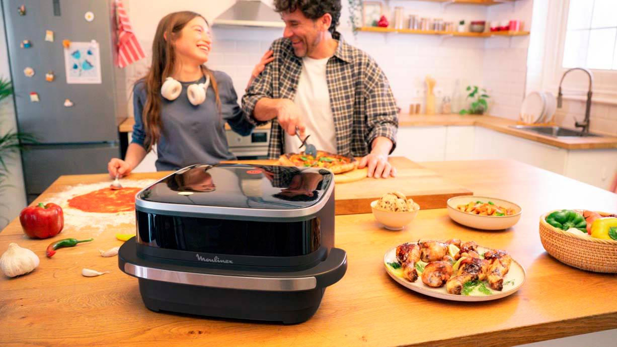 Freidora de aire, doble cubeta, 8.3 L de capacidad, tecnología grill, menú completo para toda la familia, ahorro de energía, 8 programas preestablecidos, app Moulinex gratuita