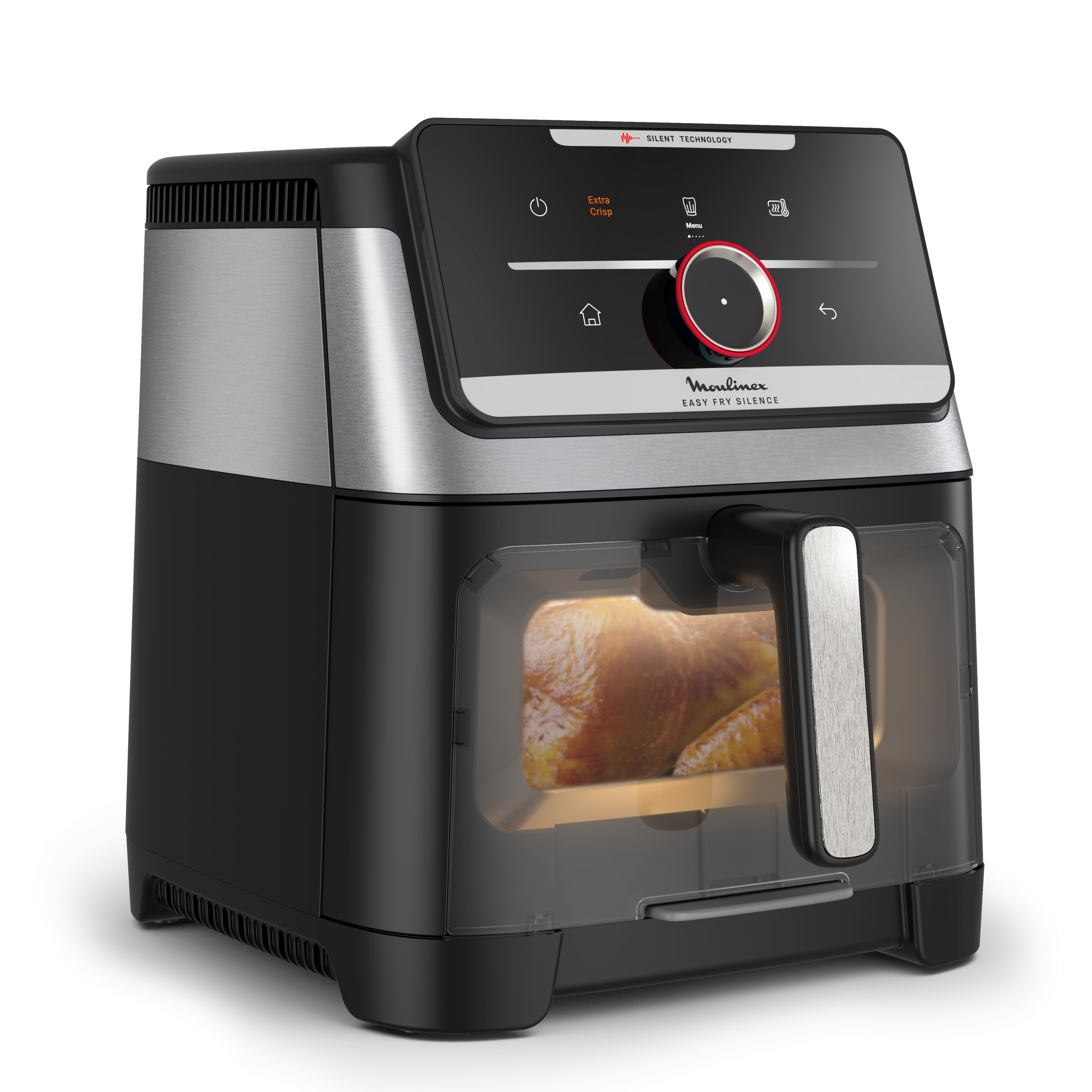 Descubre Easy Fry Silence XXL, ¡la freidora de aire más silenciosa de Moulinex! Esta freidora de aire compacta, que ofrece resultados óptimos y total tranquilidad, cuenta con una gran capacidad familiar, así como con un práctico diseño que facilita la limpieza y el almacenamiento de los alimentos. Todo ello da como resultado una cocción un 51 % más rápida y un 70 % menos de consumo energético (vs. un horno tradicional).**
