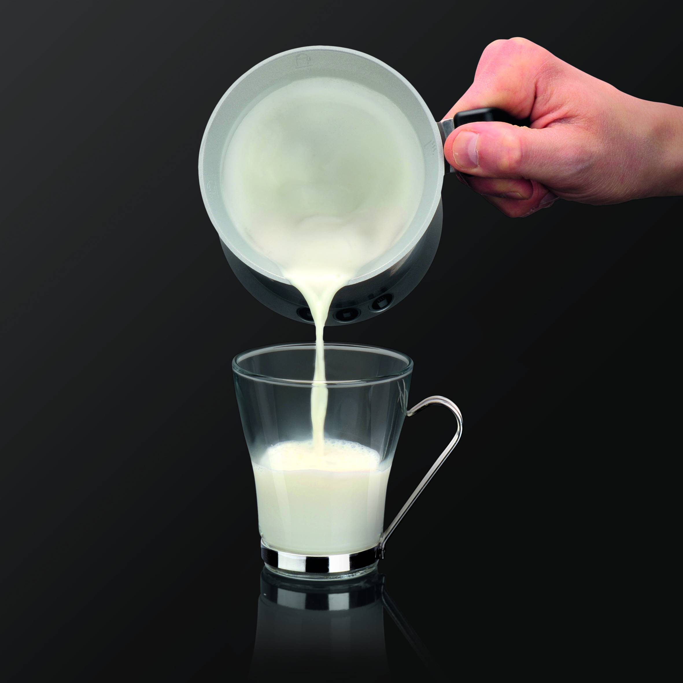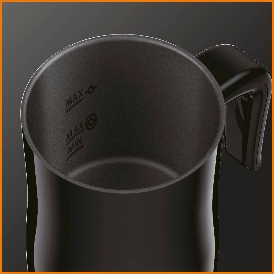 Un espumador de leche confiable con 2 modos (espuma de leche y calentamiento de leche) para deliciosos capuchinos y café con leche todos los días Panel de un solo toque intuitivo y fácil de usar para espumar o calentar sin problemas con solo presionar un botón Limpieza sin esfuerzo con un revestimiento antiadherente ideal para el uso diario Servicio fácil, cómodo y sin problemas con un borde vertedor para verter con alta precisión hasta la última gota Gran capacidad para hasta 150 ml de espuma: la cantidad óptima para una ración de capuchino casero La práctica y ergonómica base giratoria de 360° mantiene el espumador de leche firmemente en su lugar y accesible desde cualquier ángulo.