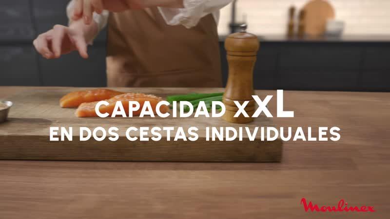 Con una capacidad de 11 L, la freidora de aire doble más grande de Moulinex cubre las necesidades de toda la familia. Su compartimento de 6,5 L te permite cocinar ingredientes voluminosos como un pollo asado de 2 kg o una pizza de 60 cm, mientras que el compartimento normal de 4,5 L cocina 1 kg de patatas fritas o una bandeja de 9 magdalenas con facilidad. ¡Ideal para entre 8 y 10 personas!