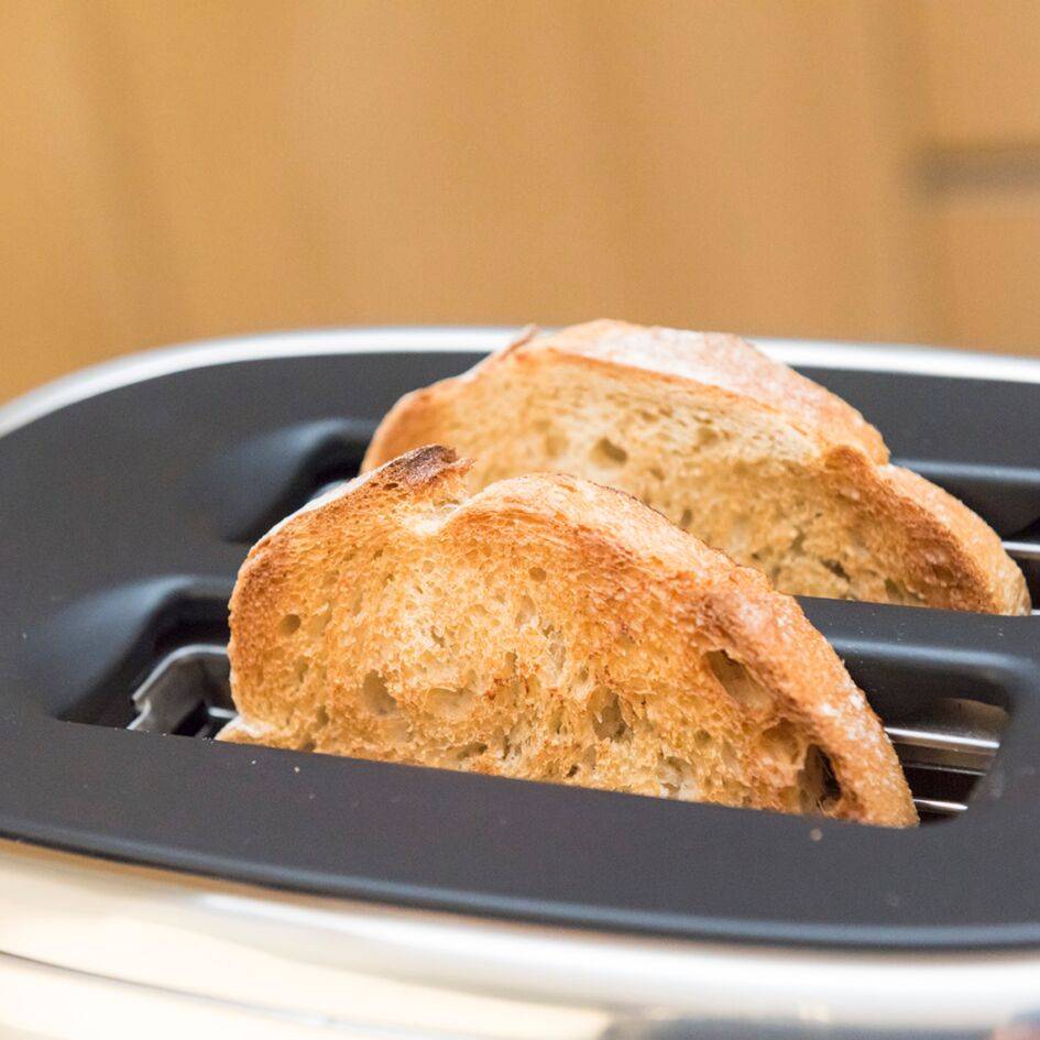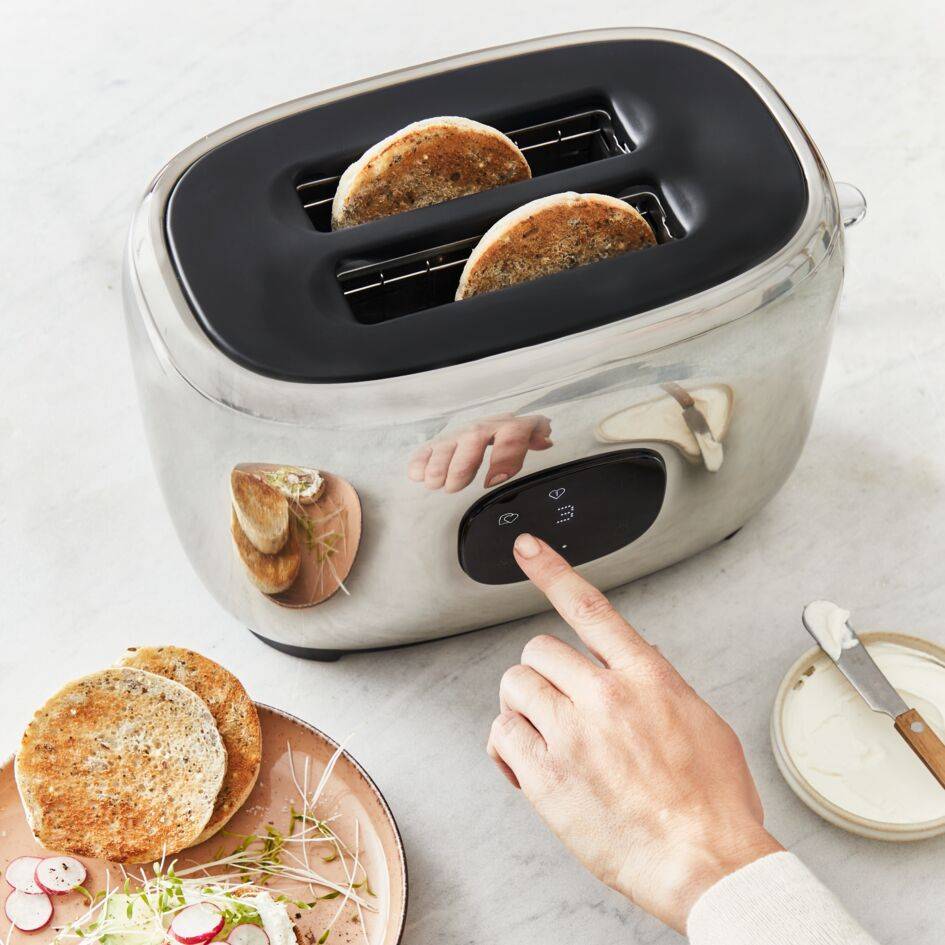 Tostadora elegante con pantalla táctil intuitiva que brinda un acceso rápido y fácil a toda la información que necesita 2 ajustes favoritos para acelerar tu rutina matutina 1050 W de alta potencia, para unas tostadas listas más rápido de lo habitual y con un consumo energético aún menor Palanca de elevación extra alta para quitar incluso pequeños trozos de pan Función de descongelación para calentar pan congelado con solo tocar un botón Función de recalentamiento para una rebanada caliente que está lista para comer en 30 segundos Tostador de 2 ranuras con bandeja extraíble para migas para una limpieza rápida y cómoda