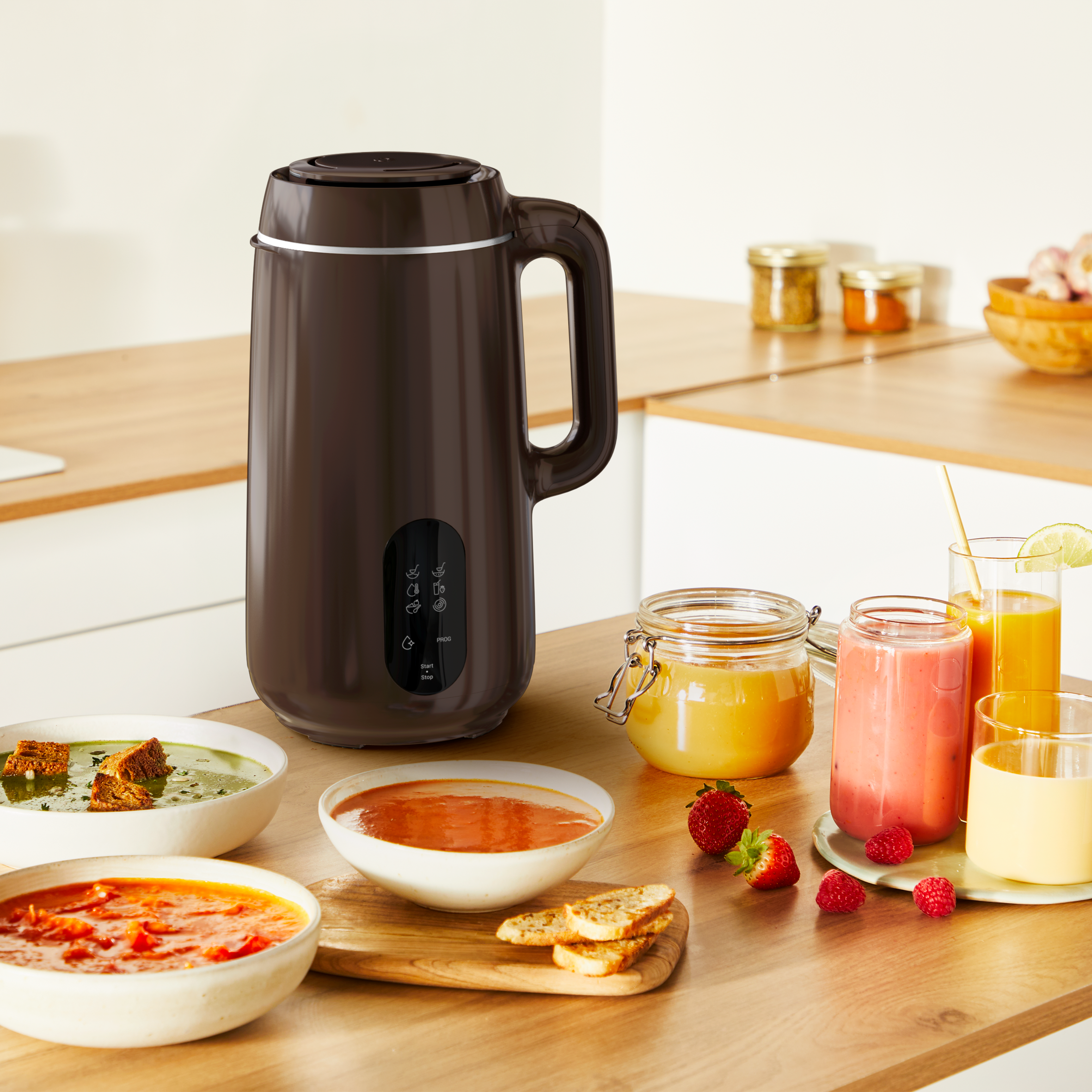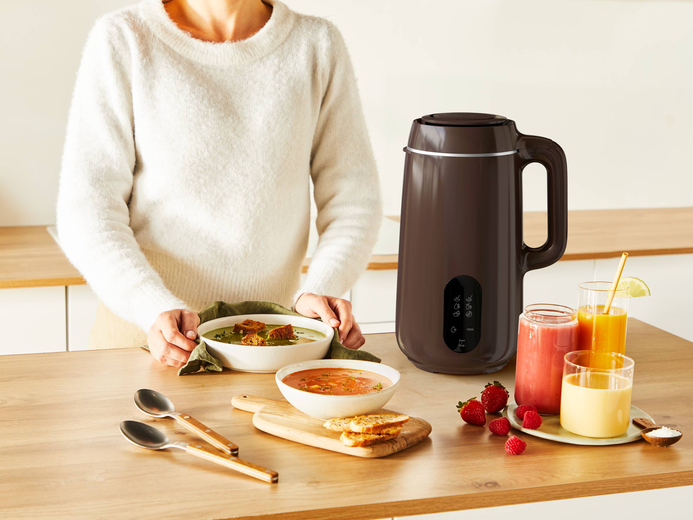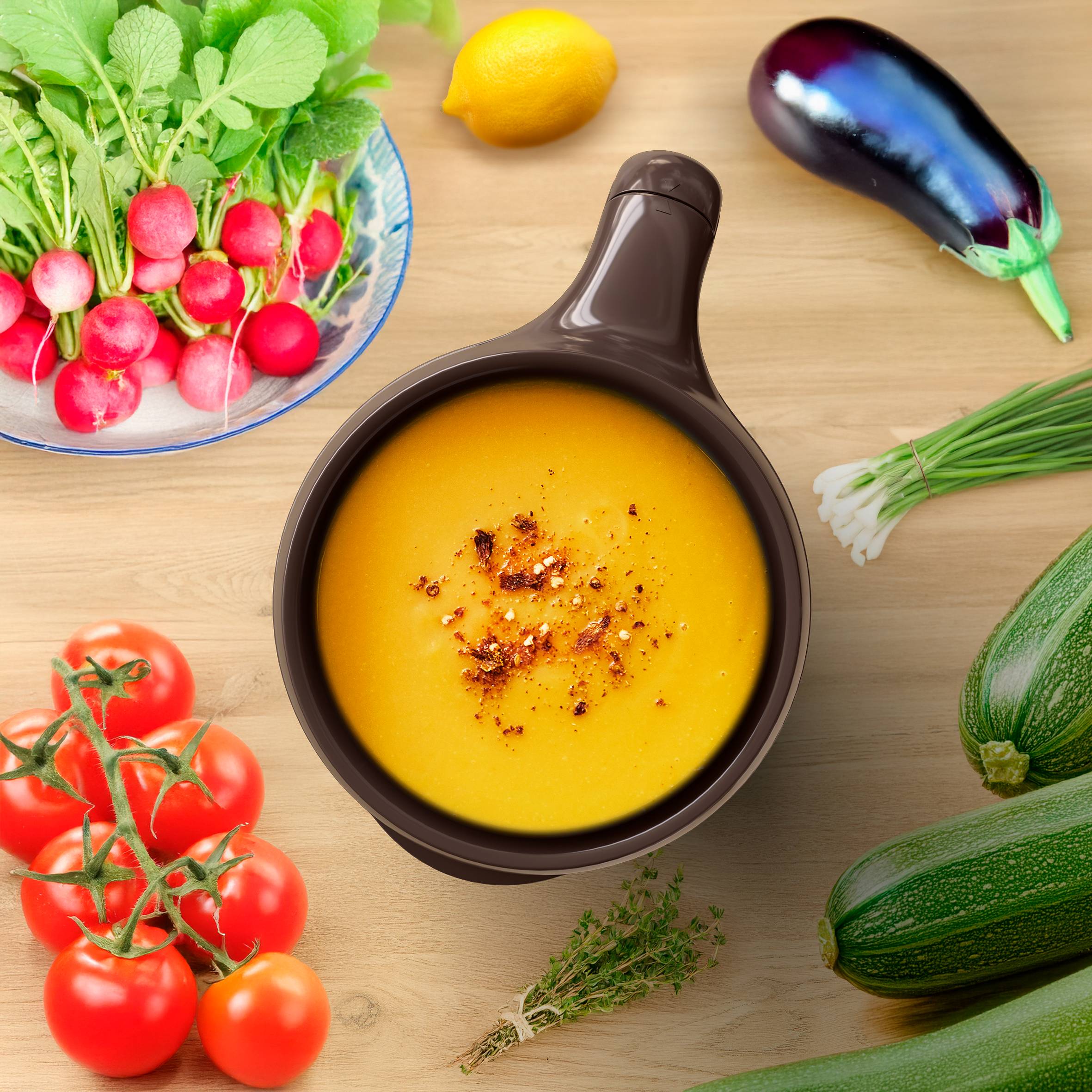 Desde deliciosas sopas y compotas, hasta batidos, smoothies y mucho más: Multisoup lo hace todo. Este versátil robot para hacer sopa cuenta con 6 programas culinarios automáticos que consiguen con facilidad deliciosas creaciones para el día a día, ¡cada una con su textura! Perfecto para toda la familia, tus recetas se mantienen calientes mientras Multisoup se mantiene frío al tacto.