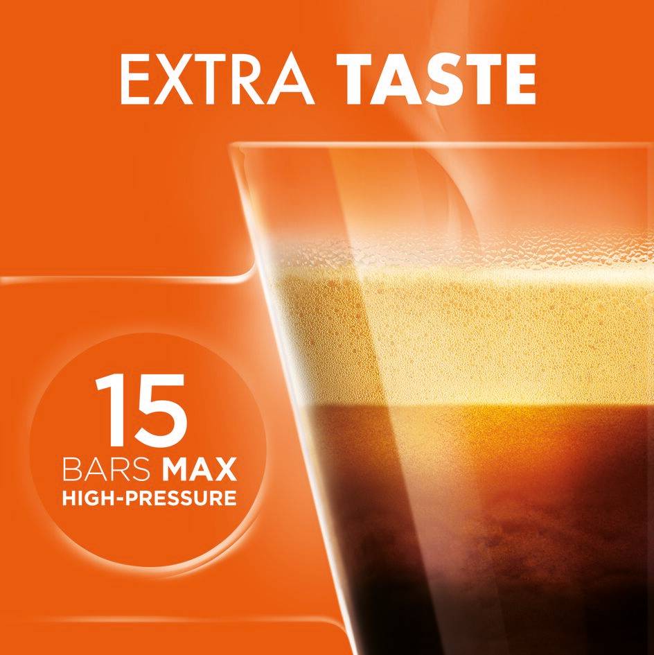 Café de calidad profesional. Prepara unos cafés de calidad profesional con una espuma densa y cremosa gracias al sistema de alta presión (hasta 15 bares) de esta cafetera de cápsulas. Como nuestras cápsulas están selladas herméticamente, el café conserva toda su frescura y disfrutarás siempre de todo su aroma y cremosidad. Solo tienes que extraer el soporte de cápsulas y la cafetera se encenderá automáticamente y se calentará hasta obtener la temperatura perfecta en tan sólo 40 segundos, permitiéndote disfrutar de tu café sin esperas. Introduce la cápsula que prefieras y baja la palanca manualmente con un sencillo gesto para preparar tu bebida de forma perfecta. Un práctico modo eco hace que la cafetera de cápsulas Nescafé® Dolce Gusto® Piccolo XS se apague después de 1 minuto de inactividad. Gracias a esta prestación, la cafetera ha obtenido una calificación de A en consumo energético. Más de 30 cafés diferentes Con la cafetera Nescafé® Dolce Gusto® podrás saborear más de 30 opciones de café de calidad para todos los gustos: café corto, largo, solo, con leche, etc. Disfruta de una amplia selección de bebidas: desde la intensidad de un ristretto o un espresso, el aroma de un lungo o el cuerpo de un grande, hasta un cremoso cappuccino o la suavidad de un latte macchiato; además de chocolate caliente, té y bebidas frías.