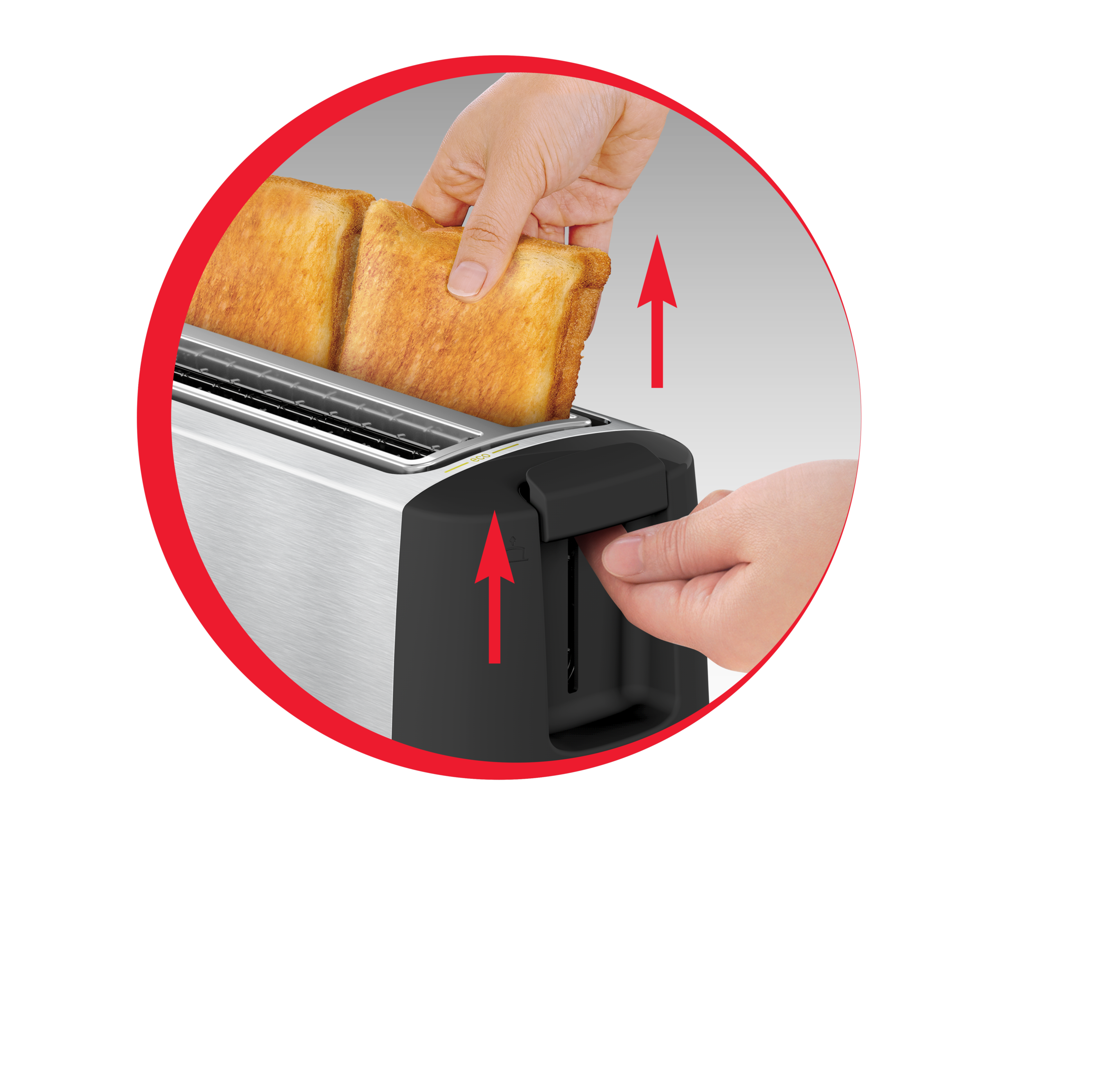 Gracias a Subito Select, con sus ranuras largas y su exclusiva función ECO , puedes tostar la cantidad de pan que de verdad necesites sin desperdiciar energía*.