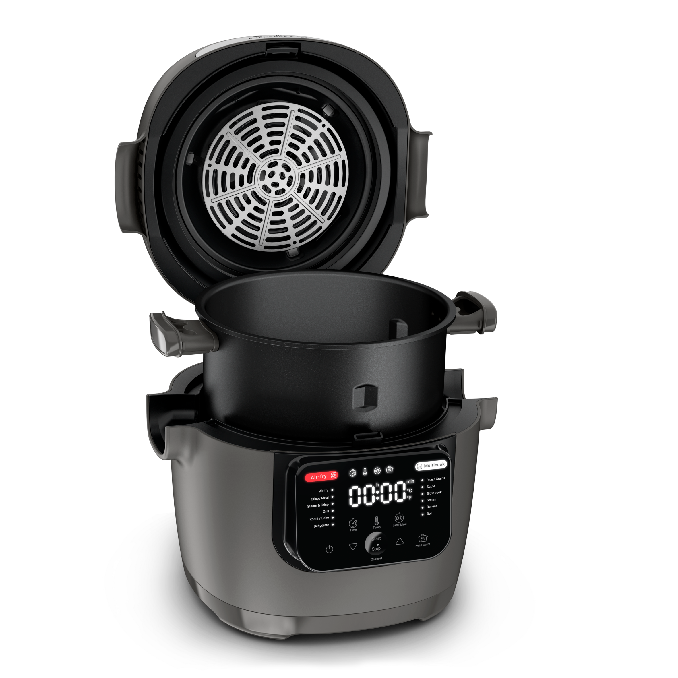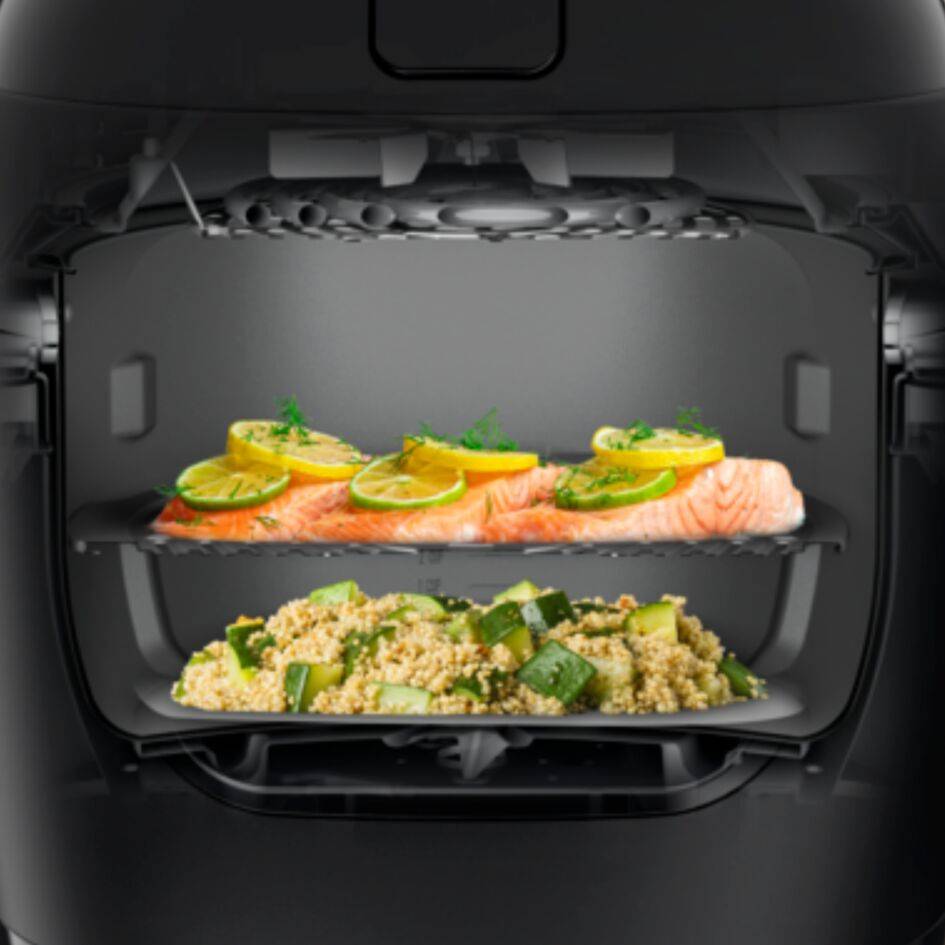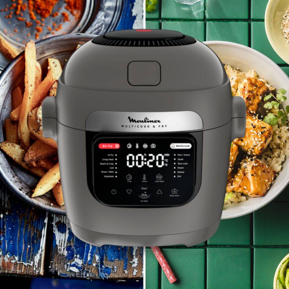 Presentamos Multicook & Fry de Moulinex, una solución de cocina versátil para comidas fáciles cocinadas óptimamente. Esta combinación de freidora de aire y robot de cocina sube el nivel de tu cocina con un paquete completo: 12 programas automáticos para cocinar sin manos, tecnología avanzada de fritura por aire para unos resultados tiernos, jugosos y crujientes en todo momento, una bandeja de cocción multicapa para preparar una comida completa de una sola vez, ¡y mucho más!