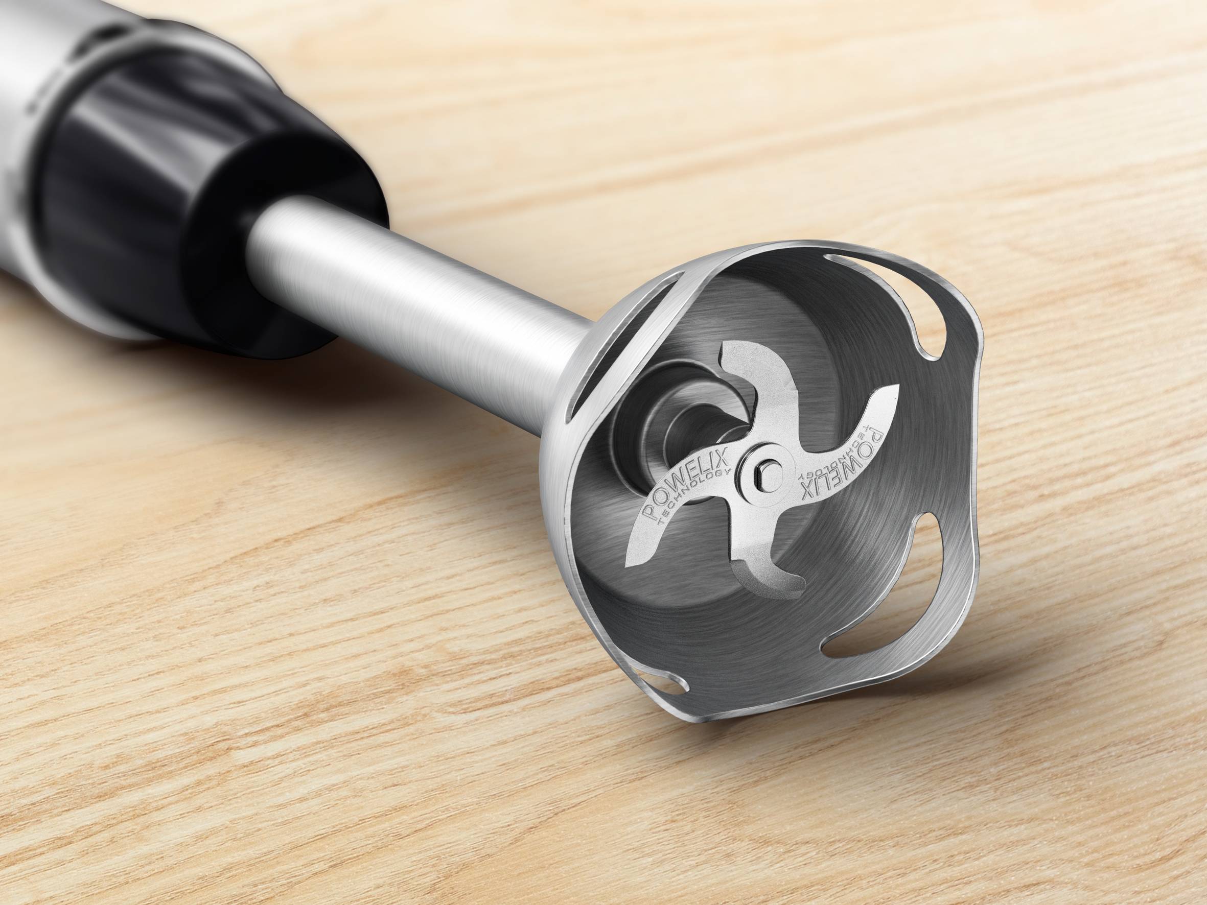 Las cuchillas con tecnología Powelix, fruto de la innovación y concebidas para durar, ponen a tu disposición una herramienta que bate extraordinariamente, proporcionando una cremosidad perfecta hasta un 30 % más rápido*. Te explicamos cómo: En primer lugar, estas robustas cuchillas de acero inoxidable presentan el ángulo de corte perfecto para triturar los ingredientes más duros con total facilidad. En segundo lugar, los afilados bordes pulverizan los alimentos hasta conseguir un resultado denso. Por último, las cuchillas giratorias crean un potente vórtice que arrastra hasta el último ingrediente hacia el centro para obtener una mezcla sin grumos lista en un abrir y cerrar de ojos.