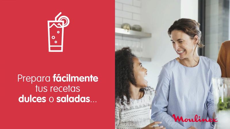 La potencia de Blendforce ofrece grandes resultados con muy poco esfuerzo. Esta batidora de vaso de 600 W cuenta con un innovador sistema de refrigeración que optimiza la circulación del aire alrededor del motor, aumentando así su durabilidad y evitando el sobrecalentamiento, para que puedas usarla durante 3 minutos sin descanso. Gracias a las 3 acciones de su tecnología de bloqueo inteligente, puedes usar la batidora a diario sin complicaciones. Acción 1: Bloqueo fácil; Con un nuevo sistema de bloqueo externo para cerrar la batidora más cómodamente (un 40 % más fácil*). Acción 2: Seguridad; Nuevo sistema de bloqueo automático en la base para mejorar la seguridad evitando que las cuchillas se muevan al colocar la jarra. Acción 3: Limpieza fácil; Nuevo sistema de clic para separar en dos el soporte de las cuchillas y facilitar su limpieza. La batidora de vaso es fácil y cómoda de usar, ya que tiene una textura en relieve alrededor del botón giratorio para facilitar su movimiento, un diseño ergonómico, natural e intuitivo y ventosas en la base curva para mejorar su estabilidad. Con una gran capacidad (hasta 2 L), es perfecta para cualquier ocasión e incluye un vaso medidor que te dará un extra de precisión. Descubre una gran variedad de opciones: smoothies, salsas, pastas para untar, granizados, etc., y consigue unos resultados excelentes y deliciosos. *con respecto a la LM300