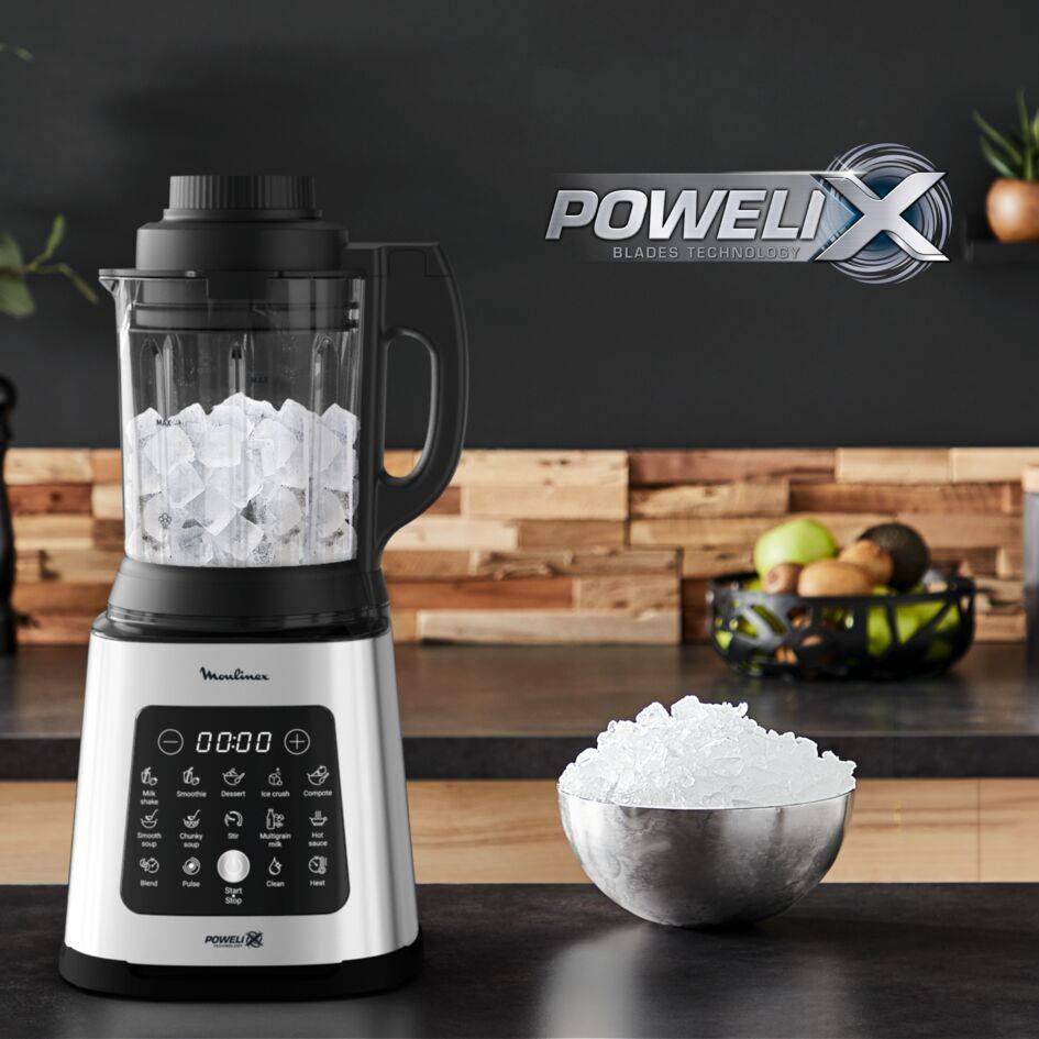 VARIEDAD DE RECETAS: Batidora de vaso y robot de cocina 2 en 1 que permite preparar una amplia gama de recetas tanto calientes como frías, sólidas y líquidas, incluso hacer tu propia bebida vegetal casera 10 PROGRAMAS AUTOMÁTICOS: 4 fríos (smoothie, batido, postre y hielo picado) y 6 calientes (compota, sopa suave, sopa con tropezones, mezclar y recalentar, bebida vegetal y salsa caliente) a solo un clic de distancia POTENTE: Batidora de alta velocidad con un motor de 1400 W y cuchillas Powelix exclusivas para un rendimiento óptimo, hasta un 30% más rápido* CAPACIDAD: Gran jarra de cristal termorresistente con una capacidad total de 2L (1,75L de capacidad útil). Óptima para preparaciones para toda la familia y amigos. SISTEMA DE REFRIGERACIÓN: Tecnología de ventilación del motor especialmente diseñada para evitar el sobrecalentamiento de la batidora y garantizar un uso totalmente seguro y duradero. Sistema de refrigeración por aire integrado para una durabilidad óptima del motor a lo largo del tiempo DISEÑO PREMIUM: Su jarra de cristal termorresistente, el acabado metálico y su pantalla intuitiva la convierten en una batidora elegante para tu cocina. Una jarra de cristal de alta calidad, auténticos acabados metálicos y un elegante panel táctil para un uso intuitivo APP MOULINEX: Inspírate cada día gracias a la aplicación gratuita de Moulinex con más de 300 recetas deliciosas que puedes preparar con tu batidora FÁCIL DE LIMPIAR: Las cuchillas son extraíbles y la función de limpieza profunda elimina el 99,99% de las bacterias** sin necesidad de líquido lavavajillas