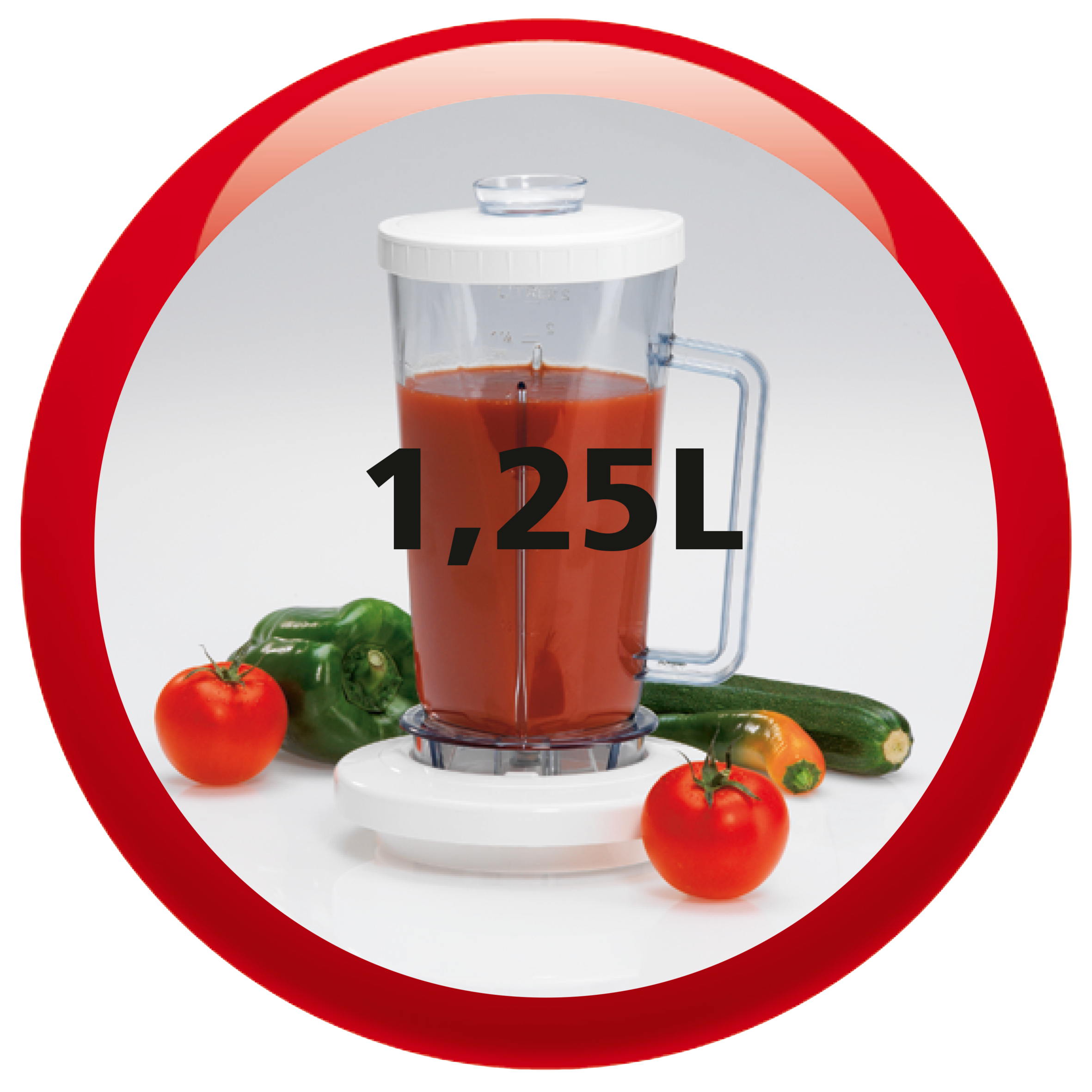 Con la batidora picadora 1, 2, 3 podrás picar, cortar en trozos pequeños y mezclar rápidamente cualquier tipo de ingrediente: carne cruda, cebolla, ajo, especias, nueces, avellanas, queso, verduras, etc. La picadora es muy fácil de usar, y gracias a su tapa transparente, podrás controlar el resultado sin necesidad de abrirla. La batidora de vaso tiene una capacidad de 1,25 L y en el bol de la picadora caben 200 g de tus ingredientes favoritos. Ambos accesorios pueden desmontarse y limpiarse con facilidad.